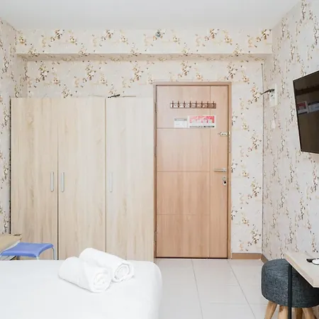 Homey Studio Apartment At Green Palm Residence By Travelioアパ-トメントには,器具でいっぱいの台所,座席,テレビ と冷暖房付きの客室があります. 施設はPalm Bay Water Parkから運転して10分だし,Musholla Alから0.6キロメ-トルです.
